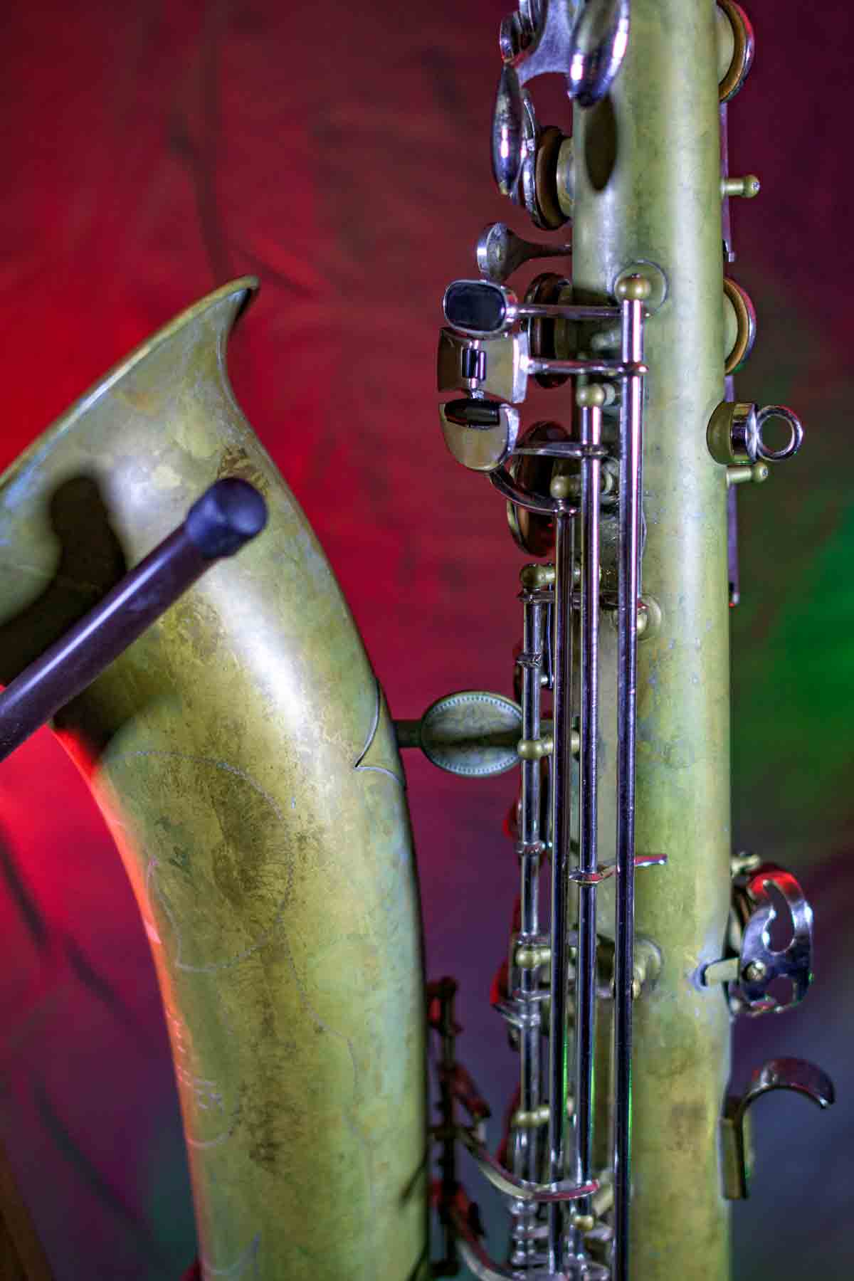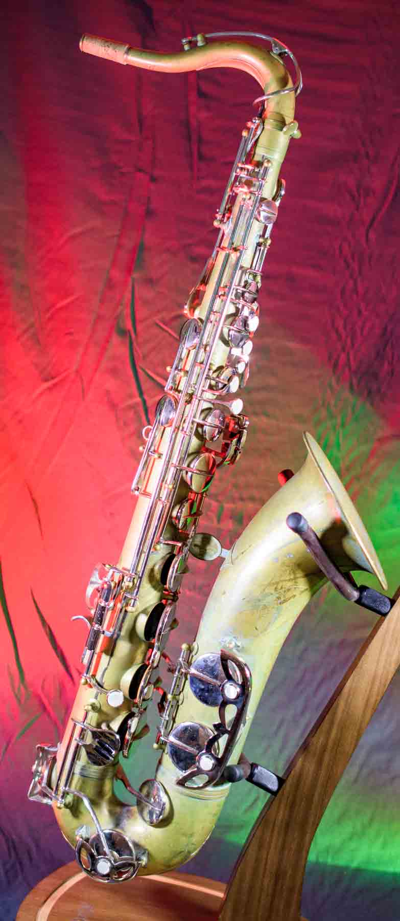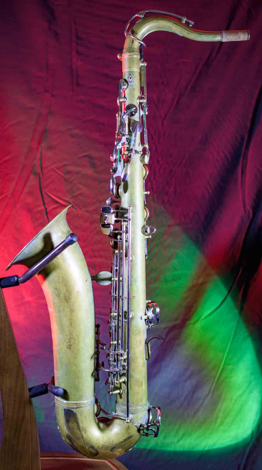 This Evette Schaeffer Tenor saxophone was made in 1974. It has been recently overhauled, new pads, corks, felt, etc. No lacquer on this horn but it has a nice patina. Comes with saxophone, mouthpiece and ligature and a brand new padded gig bag. A great set up for a student or any musician on budget.