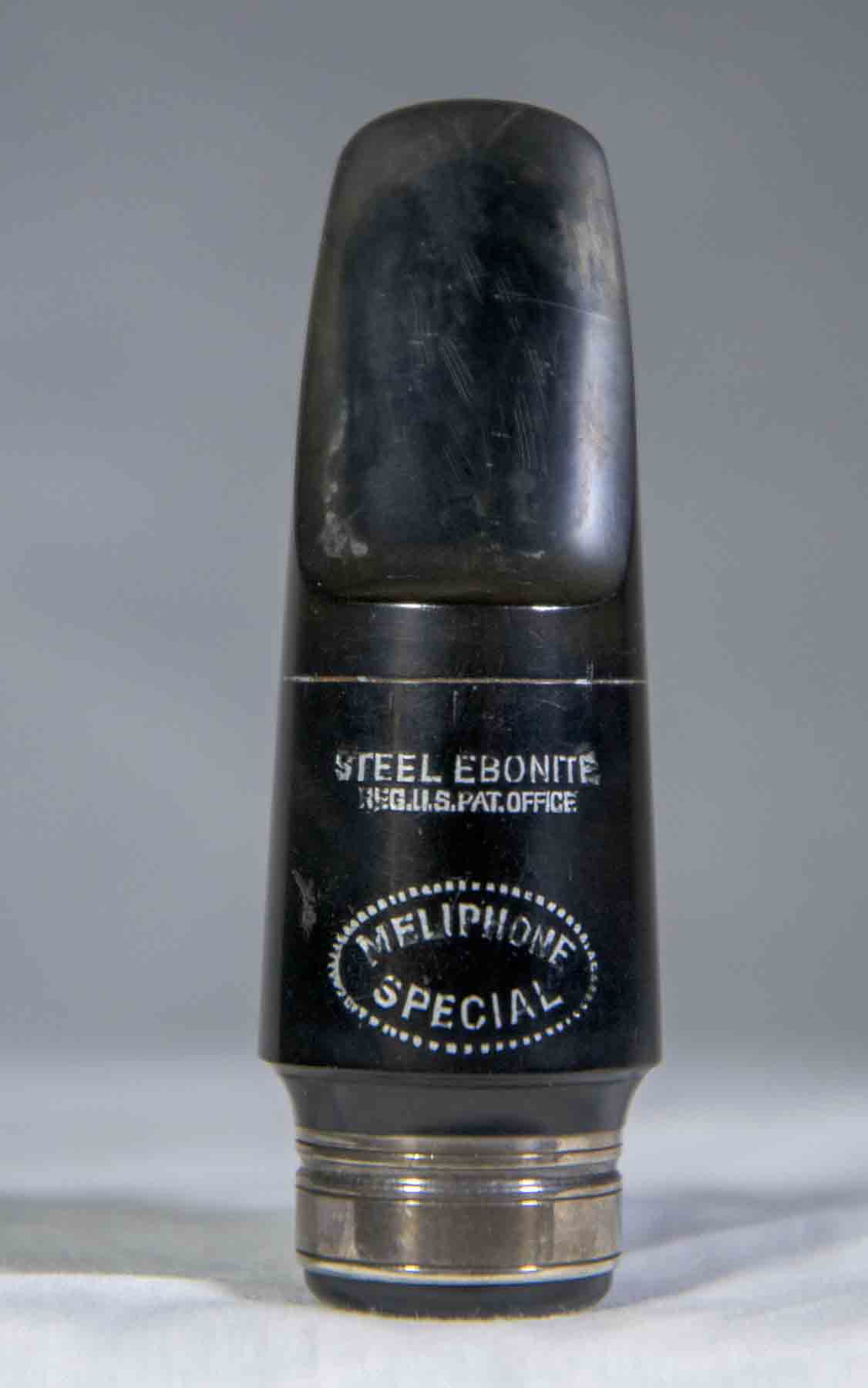 This is a vintage “Meliphone Special” mouthpiece manufactured by The Woodwind Co. of New York. These mouthpieces were produced primarily between the 1920s and the late 1960s and were favored for their clear intonation and “cutting power”.