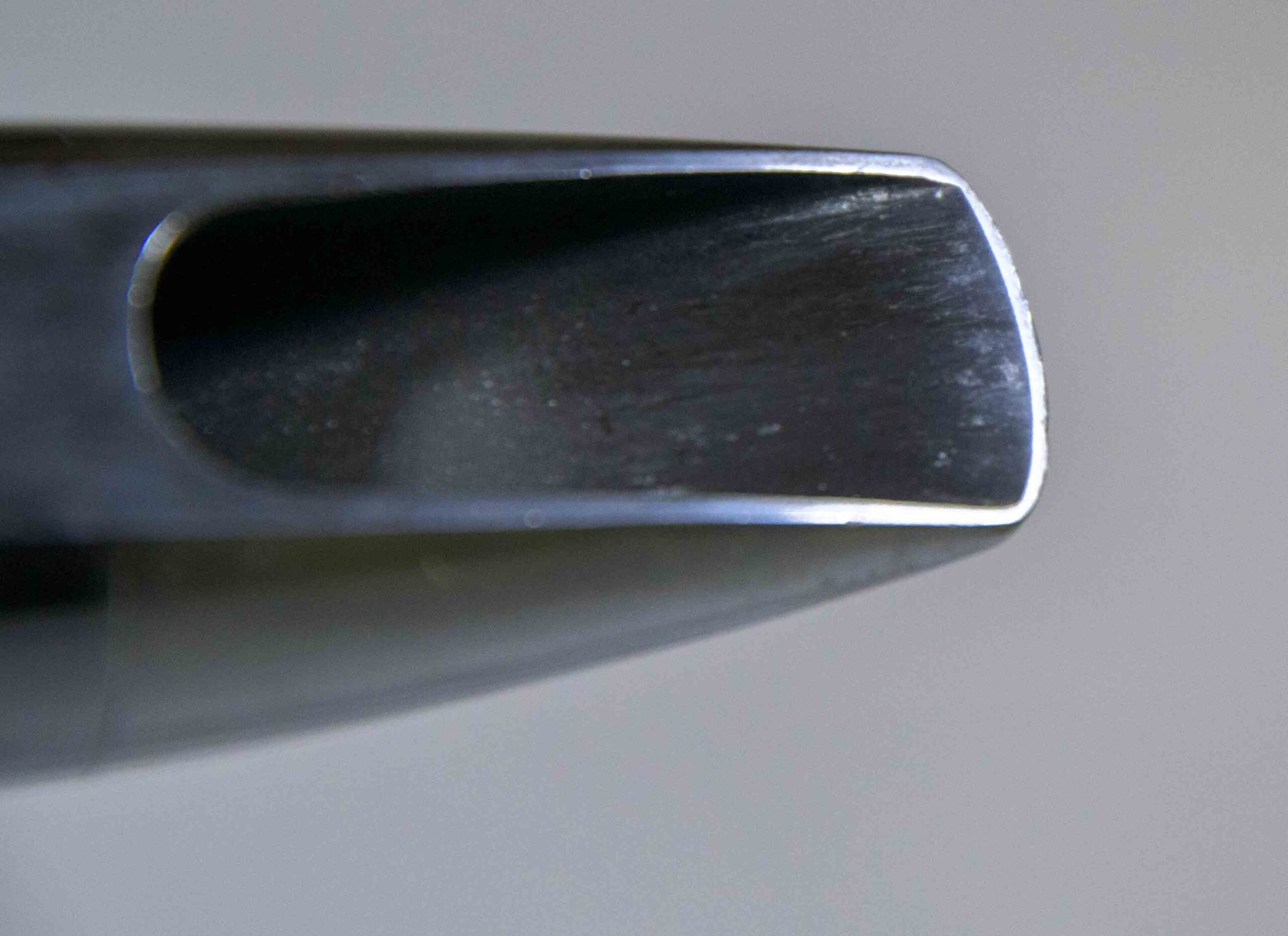 This Meyer mouthpiece is in excellent condition. It looks almost like new, the worst marks are at the edge of the table, the ligature was over tightened at some point leaving indentations on the edges. The reeds still seal properly and the mouthpiece plays wonderfully. tip opening measures .071″.