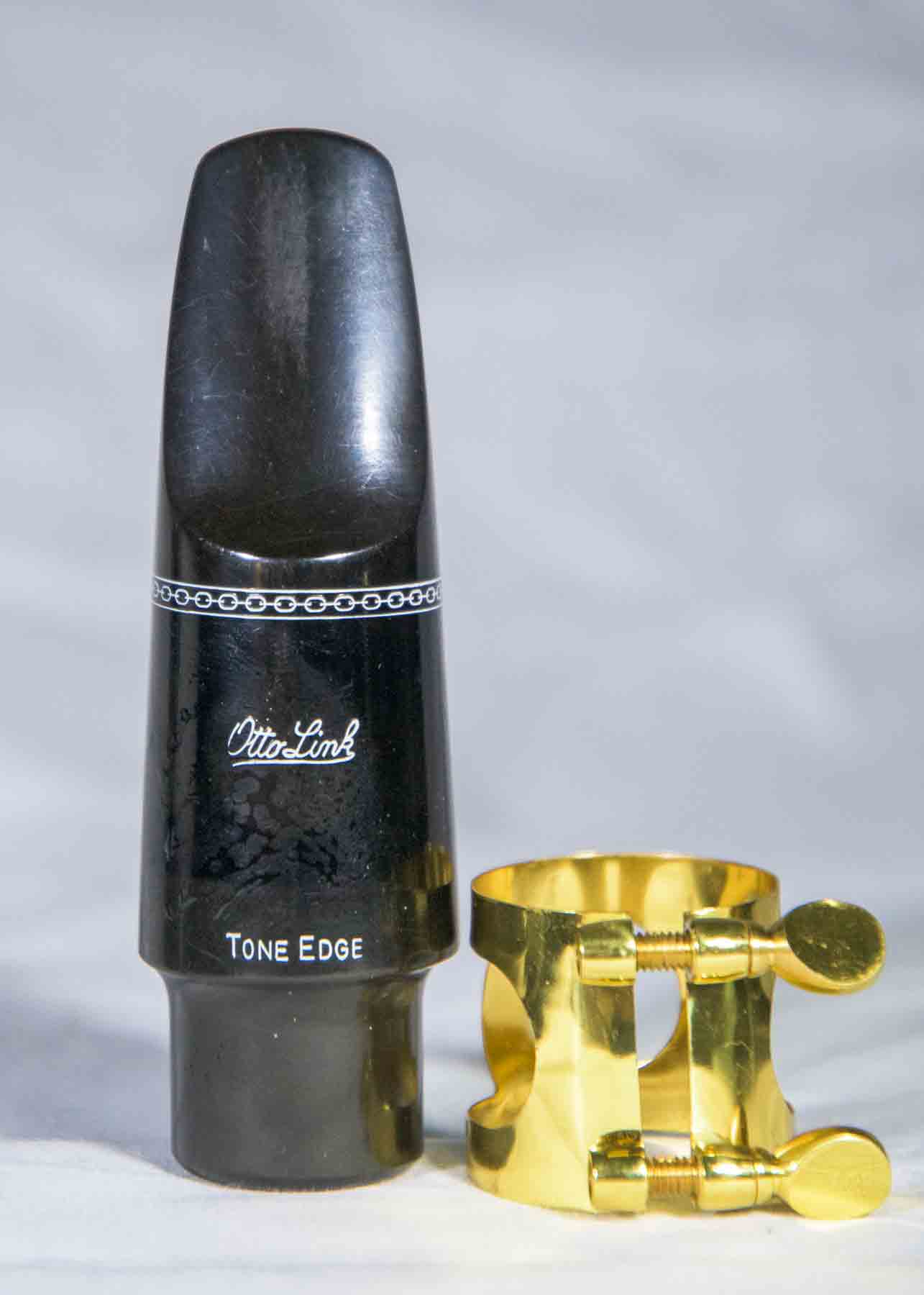 The Otto Link Tone Edge is a legendary hard rubber (ebonite) mouthpiece recognized as a standard for jazz saxophone. It is known for producing a warm, dark, and full-bodied sound with a thick core.
