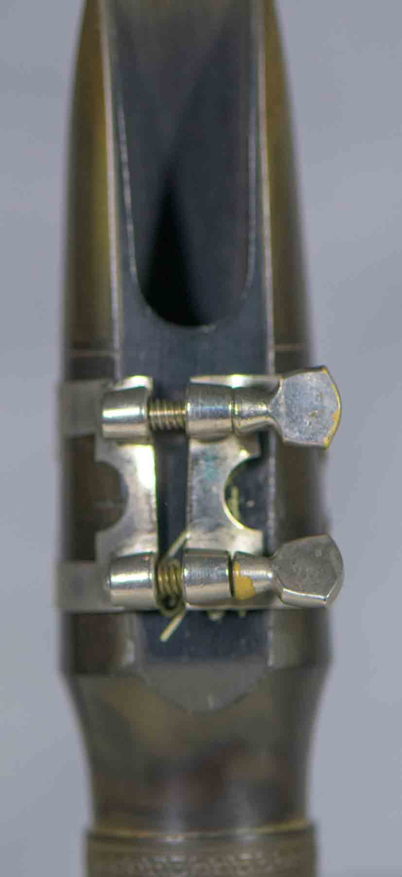 long scroll shank Selmer Soloist mouthpiece. This vintage Selmer C* tenor mouthpiece is in great condition. Comes with ligature .068″ tip opening olive-brown “patina” is a natural occurrence for vintage hard rubber as it ages and is exposed to light or moisture. This discoloration is cosmetic and generally does not affect its playing qualities.